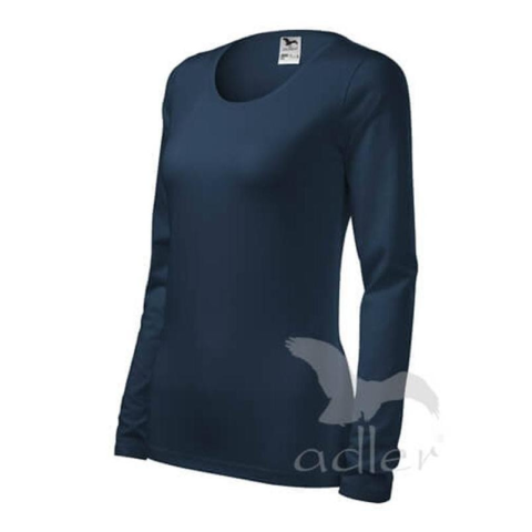 Magas grammsúlyú női hosszujjú póló. Kényelmes anyagú elasztánnal a jobb formáért. Karcsúsított nőies szabás, oldalvarrásokkal.