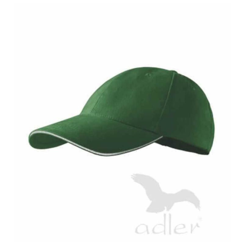 6 paneles baseball sapka durva pamutból, szellőzőnyílásokkal, meghajtott napellenzővel. A napellenzőt adott színű sáv egészíti ki. Nyomásra és hímzésre egyaránt alkalmas.