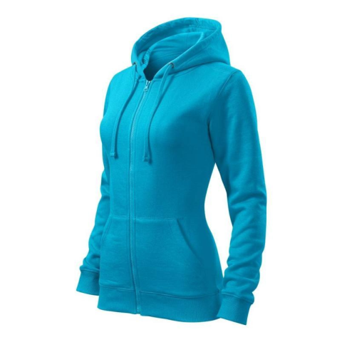 Női összehúzható pulóver kapucnival. Elülső kenguruzsebekkel ellátva.