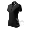 Minőségi női galléros póló magasabb grammsúllyal. Dupla, eltérő színű csíkok a gallérnál és a mandzsettáknál.