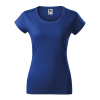 Single Jersey, 100 % pamut (a 12-es szín esetében az anyagösszetétel eltérő lehet – 85 % pamut és 15 % viszkóz), szilikonos kezelés íves szabású, oldalvarrással, mélyebb, kerek nyakkivágás, keskeny nyakkivágás saját anyagával szegélyezve 5 % elasztánna