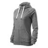 Cipzárral összehúzható női felső kapucnival és kenguruzsebbel.