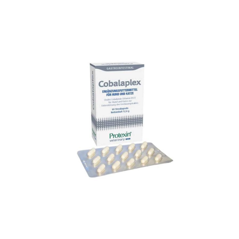 Szájon át adható kobalamin (B12-vitamin) tartalmú kapszulás kiegészítő állateledel kutyáknak és macskáknak a gasztrointesztinális rendszer támogatására.