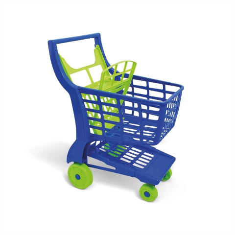 Játék bevásárlókocsi, mint egy igazi szupermarketben. Négy puha műanyag kerékkel rendelkezik.A játék 100%-ban újrahasznosítható, nem mérgező, nap- és vízálló műanyagból készült.A bevásárlókocsi mérete: 41 x 29 x 31 cmA játék zöld, piros, és kék színben ka