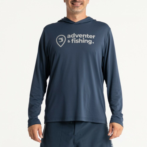 Adventer & Fishing kapucnis UV álló Póló Original Adventer Hosszú ujjú kapucnis UV póló Original Adventer témában, az Adventer & Fishing márka sötétkék színében. Ez a kapucnis UV álló póló a piacon elérhető legfinomabb nylonból készült. Az UPF50+ UV szűrővel ellátott hűtőanyag kényelmesen és komfortosan tartja a testet és elvezeti a nedvességet. A szövet szellőzést biztosít a hónalj területén. A póló a legjobb védelmet nyújtja a napfény ellen, bárm