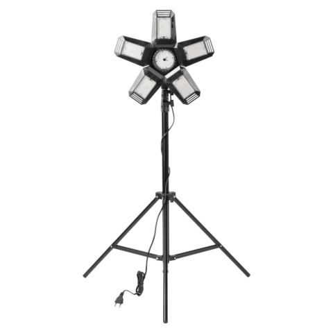 Adviti LED munka reflektor és mennyezeti lámpa 55W tripod állvánnyal, 4950 lm A RIGEL LED egy komplett lámpa szett, amely tartalmaz egy 5 szárnyú összecsukható munkalámpát, szabályozott állványt és adaptert. Bármely E27 foglalatba használható akár men