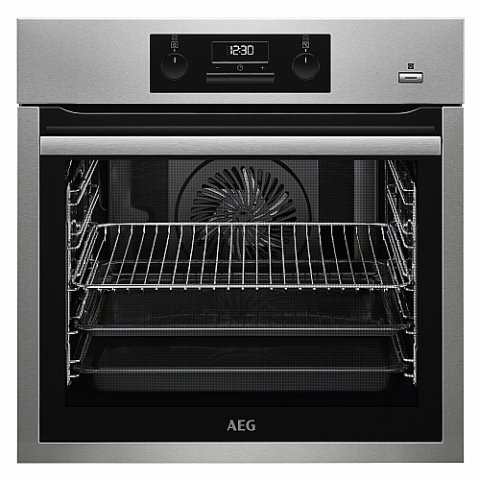 JELLEMZŐK Beépíthető sütő Multifunkciós sütő körfűtőszállal Energiaosztály: Ujjlenyomatmentes inox felület 3 sütési szint Elektronikus programóra Süllyesztett gombok Elektronika funkciói: hangjelzés, időtartam kijelzés, program vége, percszámláló, idő Halogénvilágítás Sütési táblázat a sütőajtón Könnyen tisztítható üvegfelületű ajtó Kivehető grill fűtőszál Hűtő ventilátor: A hűtőventilátor automatikusan elindul, amikor bekapcsoljuk a sütőt. Hűti az elektronikus alkatrészeket és a külső részt. Sütő tálcák: 1 szürke zománcozott sütőtálca, 1 szürke zománcozott zsírfelfogó tálca Sütőrácsok: 1 krómozott grillrács Kábelhossz: 1.5 m TELJESÍTMÉNY Sütő tisztítás: Aqua Sütési tartomány: 50°C - 275°C Sütőtér űrtartalma (l): 71 BEÉPÍTÉS Ajtó: könnyen leszerelhető ajtó ENERGIA Energiaosztály: A EGYÉB JELLEMZŐK PNC: 944 187 805 Márkanév: AEG Modellnév: BES351110M Sütési mód: hőlégbefúvás (körfűtőszál+ventilátor) Grill típusa: elektromos, lehajtható Sütőfunkciók: alsó sütés, hagyományos sütés, kiolvasztás, gyors grill, grill, világítás, pizza, hőlégkeverés PLUS, turbo grill Kijelző típusa: SET timer, digitális kijelző, programozható Sütőajtó: tripla üveges, sütési táblázat szimbólumokkal, U-alakú betét Hálózati csatlakozó: Van Sütő világítás: 1, felül halogén izzó Rácsozat a sütőben: Krómozott vezetőrácsok, Krómozott vezetőrácsok, EasyEntry Egyéb tartozékok: 1 szintű sütősín Sütő tálcák: 1 szürke zománcozott sütőtálca, 1 szürke zománcozott zsírfelfogó tálca Sütőrácsok: 1 krómozott grillrács Húshőmérő: nincs Forgónyárs: nincs