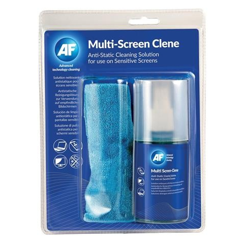 1 kép AF Tisztítófolyadék, képernyőhöz, mikroszálas nagy kendővel, pumpás, 200 ml, AF "Multi screen-clene"