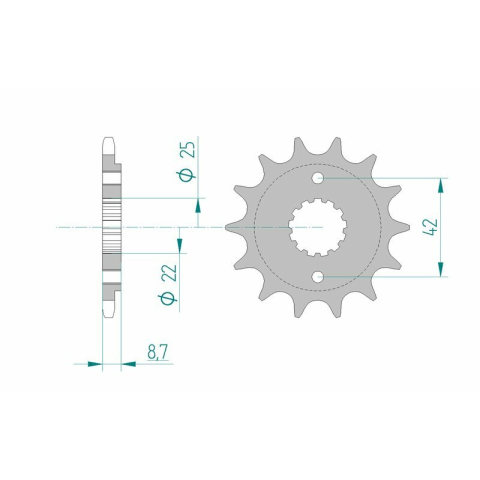 Az AFAM első lánckerék kiváló minőségű, nagy szilárdságú acélötvözetből készül, és precíziós megmunkálással készül. Ezek az első lánckerékek minősége miatt az AFAM-ot a motorkerékpár átviteli alkatrészeinek világelsőjévé tette. Az AFAM első lánckerékei a következő tulajdonságokkal rendelkeznek:- Standard acél első lánckerék- Csúcsminőségű gyártás és minőség- Hozzájárul az átviteli készlet tartósságához