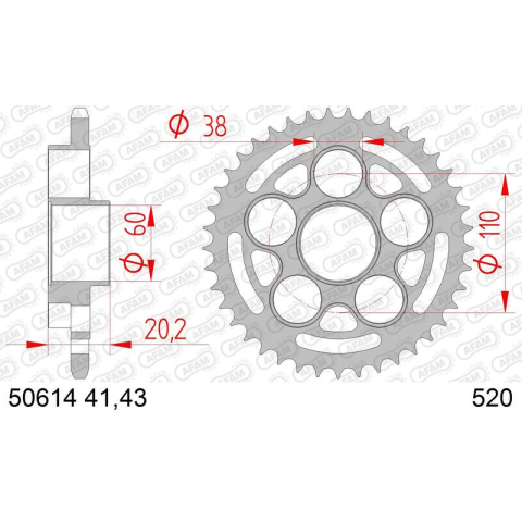 1 kép AFAM acél standard hátsó lánckerék 50614 - 520