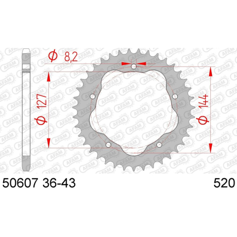 1 kép AFAM Acél Standard Hátsó Láncsprocket 50607 - 520