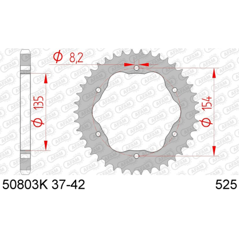 Az AFAM acél hátsó lánckerékek C45 acélból vannak megmunkálva, majd magasabb keménységre és ellenállásra kezelik. A magas minőségű gyártási folyamat és a vágási pontosság miatt az AFAM világvezetővé vált a motorkerékpár átvitelalkatrészek területén.- Acél hátsó lánckerék- Csúcsminőségű gyártás és minőség- Hozzájárul az átviteli készlet tartósságához