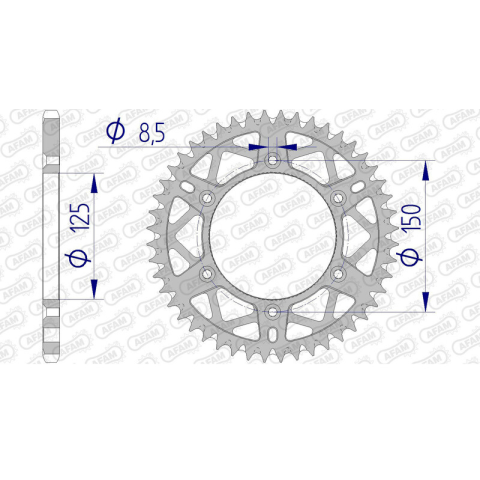 Az AFAM alumínium hátsó lánckerékek könnyűséget és ellenállást kombináló ötvözetből készülnek. A magas minőségű gyártási folyamat és a vágási pontosság miatt az AFAM világelső a motorkerékpár átvitelalkatrészek területén.- Sárfutó alumínium hátsó lánckerék- Versenyzésre tervezett T4 dizájn- Segít a sár, homok... eltávolításában a lánckerékről- Csúcsminőségű gyártás és minőség- Nélkülözhetetlen az MX és Enduro számára