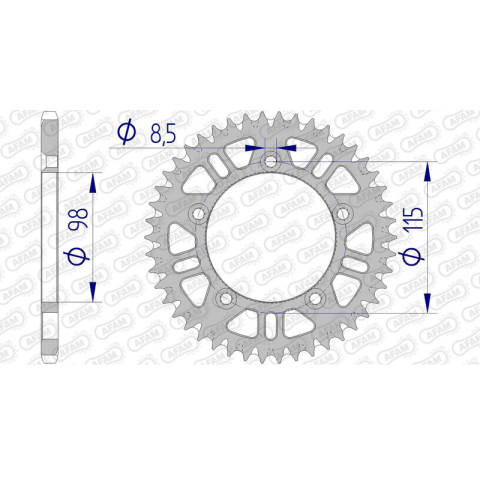 Az AFAM alumínium hátsó lánckerékek könnyűséget és ellenállást kombináló ötvözetből készülnek. A magas minőségű gyártási folyamat és a vágási pontosság miatt az AFAM világelső a motorkerékpár átvitelalkatrészek területén.- Sárfutó alumínium hátsó lánckerék- Versenyzésre tervezett T4 dizájn- Segít a sár, homok... eltávolításában a lánckerékről- Csúcsminőségű gyártás és minőség- Nélkülözhetetlen az MX és Enduro számára