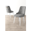 Alakítsa át életterét lenyűgöző Szék Szettünkkel, amelyet úgy terveztek, hogy stílust és kényelmet hozzon otthonába. 100%-os fémkerettel és luxus Babyface szövettel készült, ez a két székből álló szett tökéletes kiegészítője bármilyen modern belső térnek.Elegáns DizájnEzeknek a székeknek a letisztult és modern dizájnja azonnal feldobja étkezője, nappalija vagy irodája megjelenését. A szürke és fehér színek kombinációja egy csipetnyi kifinomultságo