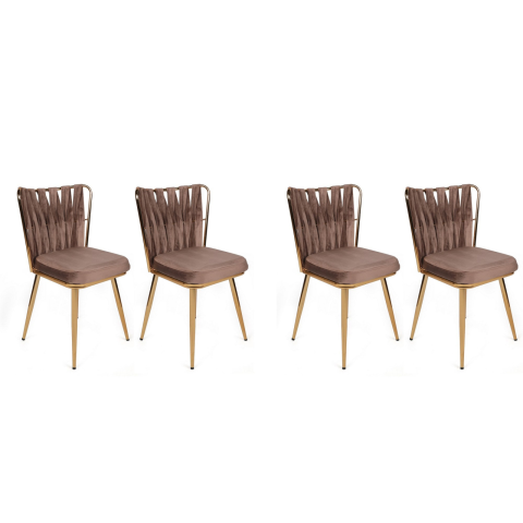 Az elegáns, négy székből álló barokk stílusú szett luxust és kifinomultságot kölcsönöz a belső térnek. Ötvözi a történelmi design időtlen szépségét a modern glamour megjelenéssel, így a nappali, a hálószoba, az étkező és az iroda markáns kiegészítőjévé válik. A gazdag arany és világosbarna színkombináció azonnal magára vonzza a figyelmet, és egyedülálló karaktert kölcsönöz a térnek.
