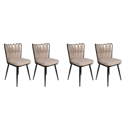 A stílusos négy székből álló szett eleganciát, kényelmet és tartósságot hoz az enteriőrbe. A krém és fekete szín kombinációjából álló modern design kifinomult hatást kelt, és könnyen beilleszthető különböző stílusú berendezésekbe – a moderntől a hagyományosig. Étkezőbe, konyhába, valamint nappali vagy dolgozószoba kiegészítőjeként is alkalmas. Az ülés puha, bársonyos anyaggal van kárpitozva, amely kellemes tapintású és kényelmes üléspozí