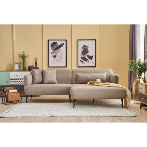 Alakítsa át életterét luxus és stílusos sarokkanapéinkkal. A masszív bükkfa vázzal és 100% vászonszövetből készült kanapé nemcsak tartós, hanem hihetetlenül kényelmes is. A gazdag barna szín eleganciát kölcsönöz bármely helyiségnek, míg a fekete fémlábak modern csavart adnak. Kényelem és stílus kombinálvaMerüljön el a plüss 30 dns habpárnákban, és pihenjen stílusosan ezen a tágas kanapén. A nagyvonalú ülésmélység és -magasság maximális kényelme