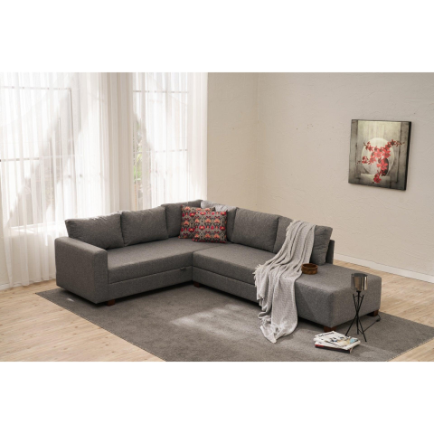 Alakítsa át életterét a sokoldalú és stílusos sarokkanapéval. Ez a darab nem csak egy kanapé, hanem egy kényelmes ágy is vendégei számára, vagy egy hangulatos hely, ahol Ön pihenhet és kikapcsolódhat. Kényelem és stílus kombinálvaA fa- és forgácslapvázzal készült kanapé-ágy masszív és tartós, így hosszú távú használatot biztosít. A pamut és poliészter szövet egy csipetnyi luxust kölcsönöz, míg a 28 dns közepes keménységű szürke habszivacs a kénye