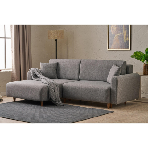 Alakítsa át életterét az elegáns szürke színű, lenyűgöző sarokkanapéval. Ez a sokoldalú bútordarab nemcsak kanapé, hanem kényelmes ágy is, amelyen vendégei alhatnak. Kényelem és stílus kombinálvaA 28 dns habszivacs tökéletes egyensúlyt biztosít a támasz és a kényelem között az üléshez, míg a 100% poliészter szövet egy kis luxust kölcsönöz lakberendezésének. A bükkfa lábak nem csak stílusossá teszik az ágyat, hanem tartósságot és stabilitást is bi