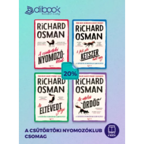 Richard Osman A csütörtöki nyomozóklub e‑könyv‑csomagja egy kedves, brit hangulatú cozy krimisorozat, melyben négy nyugdíjas – egykori pszichiáter, nővér, szakszervezeti vezető és feltehetően kém – hetente találkozik, hogy közösen oldjanak meg rejtélyeket