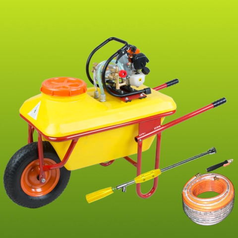 Talicskás permetező elsősorban házikertek, fóliasátrak, üvegházak növényvédelmére, vagy állattartásban fertőtlenítésre,Motor: kétütemű, 26 cm3 teljesítményű,Max. vízszállítás: 6 liter/perc,Üzemi nyomás: 1,5-2,5 mpa (10-20, maximum 25 bar),Teljesítmény: 0,75 kW,Kiegészítő tartozék: 15m nagynyomású tömlő (benne van a csomagban), szórópisztoly, ,Permetlétartály térfogata: 75 liter