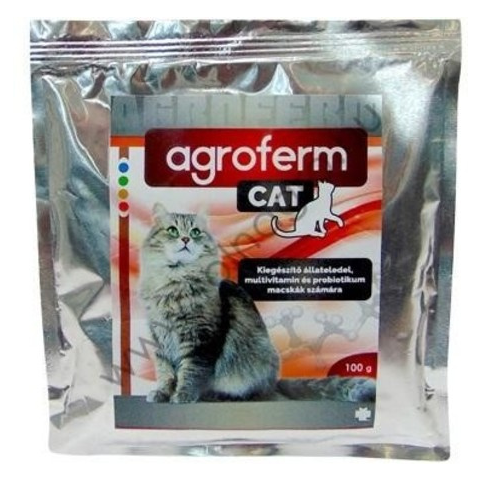 Az Agroferm Cat az egészséges bélflórát visszapótló és fenntartó probiotikum macskáknak. A macskák emésztőrendszeri megbetegedéseinek megelőzésére, egészséges bélflóra kialakítására, emésztés, étvágy javítására szolgáló természetes probiotikum. Gátolja a Coli-félék túlszaporodását, a hasmenés kialakulását. Növeli a természetes immunitást és az ellenálló képességet.Csökkenti a stresszhatásokat, étrendváltozáskor javítja az étel tole