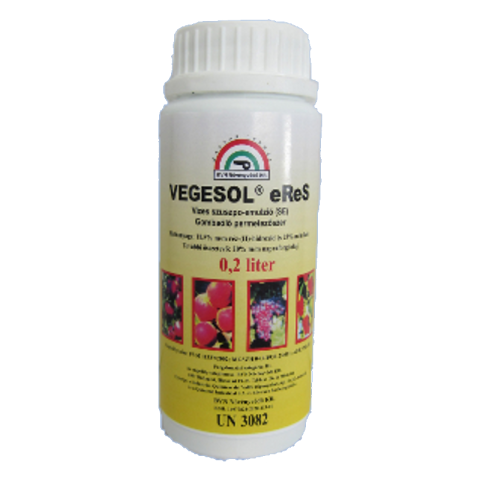 Vegesol eReS gombaölő lemosó permetszer. Felhasználás: - almatermésüeknél: varasodás, lisztharmat, baktériumos- és gombás ágelhalások ellen - őszibarack taftinás betegség ellen - köszméte amerikai lisztharmat ellen - ribiszke amerikai lisztharmat, európai lisztharmat, mikoszferellás levélfoltosság ellen - málnában vesszőbetegségek ellen - uborka peronoszpóra, lisztharmat ellen