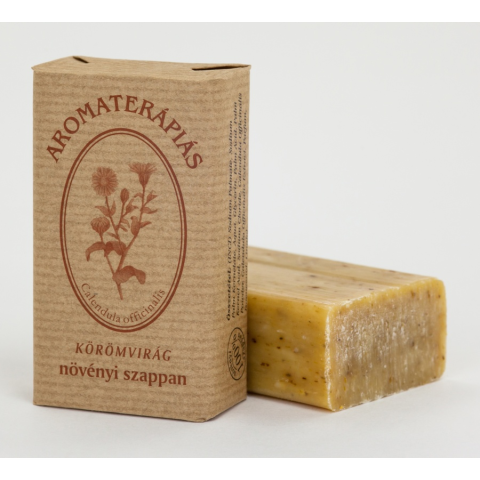 A körömvirág szappan körömvirág őrleménnyel festve. Hatóanyagként körömvirágolajat és bergamott illóolajat tartalmaz. Hámsejt regeneráló, nyugtató, gyulladáscsökkentő hatással rendelkezik. Az alapanyag (kókuszvaj és pálmamagolaj