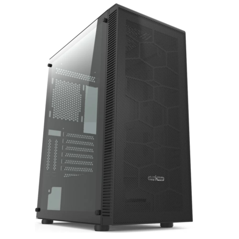ATX formátumú Midi-torony kialakítású számítógépház. - Elegáns fekete rácsos front panel - Edzett üveg oldalpanel - Elkülönített tápegység kamra - 7 + 2 db bővítőhely