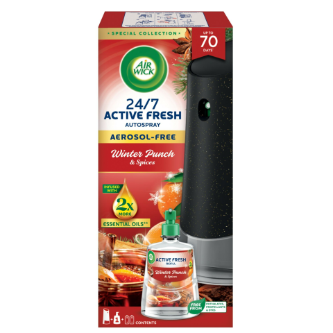 1 kép Air Wick Active Fresh Automata légfrissítő készülék Gyümölcsös téli puncs utántöltővel 228ml