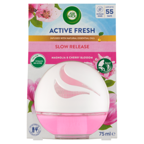 Teljes Air Wick Active Fresh Magnólia és cseresznyevirág légfrissítő gömb 75 termékleírás