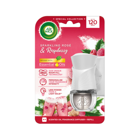 Teljes Air Wick Elektromos légfrissítő készülék Rozé Pezsgő és Málna utántöltővel 19ml termékleírás