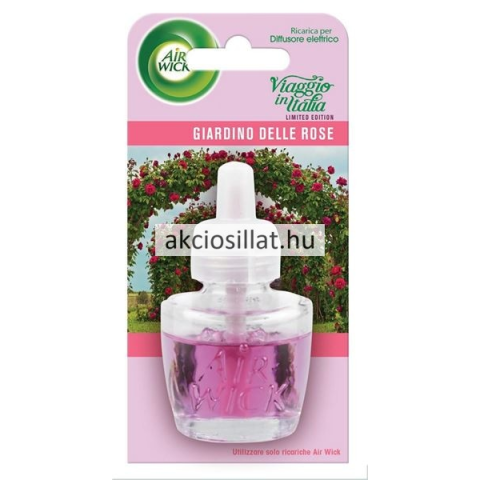 Air Wick Elektromos Utántöltő Giardino Delle Rose 19ml – Rózsás Illatú Kert Az Air Wick Giardino Delle Rose elektromos utántöltő egy virágzó rózsakert varázslatos illatát hozza el otthonába. A friss rózsa illata, elegáns és romantikus hangulatot tere