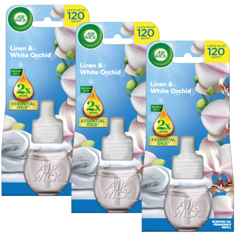 1 kép Air Wick Pamut és fehér orchidea Utántöltő elektromos légfrissítő készülékhez 3x19ml