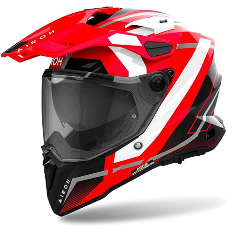 Motoros sisak - kompozit héj, ECE 22.06 homologizáció, antiscratch, UV-szűrős és antifog plexi, pinlock, integrált napellenző, kivehető, mosható és hipoallergén belső, levehető arcpárna, interkom előkészítés, DD-gyűrűk, tömege 1600 g (± 50 g), piros, mérete XXXL, fényes felületkezelés, sport design Helma na motorku AIROH je povinnou výbavou každého motorkáře a při nehodě výrazně snižuje riziko vážných poranění hlavy díky schopnosti absorbovat nárazy. P