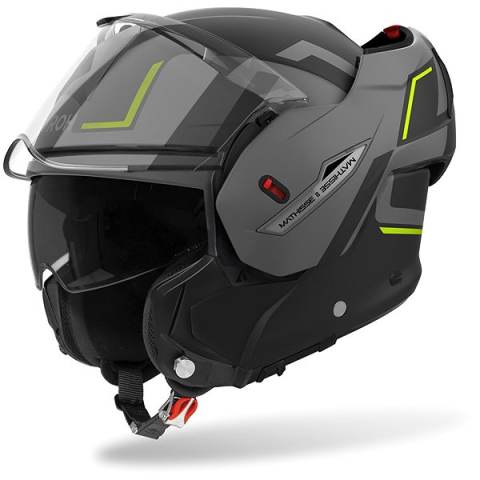 Motoros sisak - termoplast héj, ECE 22.06 P/J homologizáció, antiscratch, UV-szűrős és antifog plexi, pinlock, integrált napellenző, kivehető, mosható és hipoallergén belső, levehető arcpárna, interkom előkészítés, mikrometrikus csat, tömege 1600 g (± 50 g), sárga, mérete XL, matt felületkezelés, sport design Az ismert AIROH motoros sisak elsődleges védelmet nyújt minden motoros feje számára, mivel eséskor hatékonyan elnyeli az ütközés energiáját, csökkentve