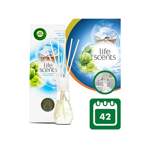 Pálcás aroma diffúzor - üde illat akár 28 nap hatással, üveg edény, 6 pálca, pálcák hossza 19,5 cm, űrtartalma 25 ml Varázsold otthonodba a frissen mosott ruhák kellemes illatát az AIR WICK aroma diffúzorával. Az illatpálcikák természetes rattan szárakból készültek, amelyek csodálatos illatot terjesztenek a szobában