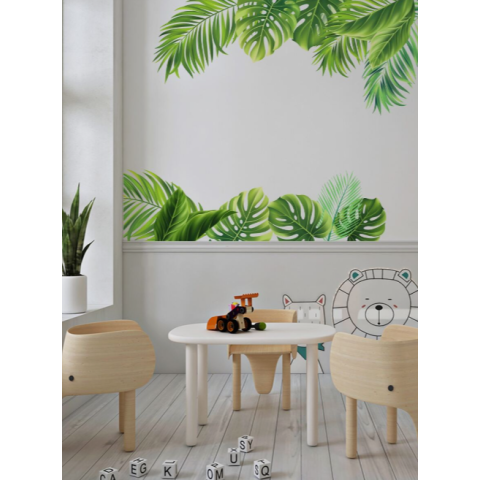 Élénk zöld, trópusi hangulatot árasztó falmatrica pálmalevél motívummal, mely bármely helyiségben üde hangulatot teremt.