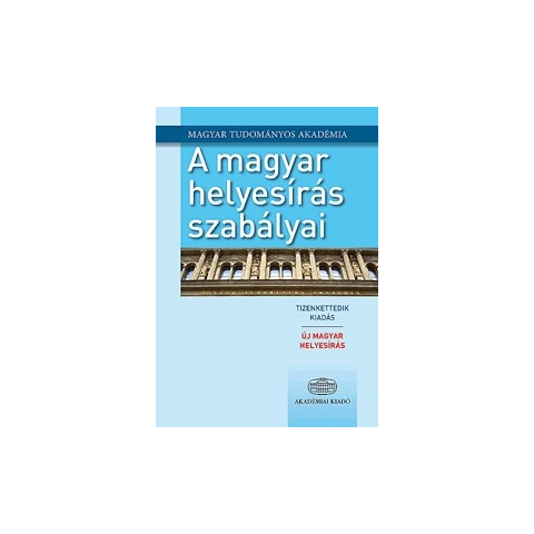 Kiadó: Akadémiai Kiadó Kiadás éve: 2015 A magyar helyesírás új, a Magyar Tudományos Akadémia által alkotott és jóváhagyott szabályzata: a 12. kiadás.· A magyar helyesírásra vonatkozó szabálypontok példákkal · A szabályzathoz szervesen kapcsolódó szótá