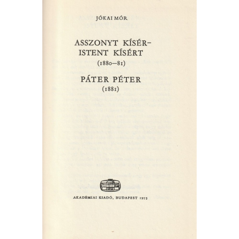 Akadémiai Asszony kísér-Istent kísért (1880-81) / Páter Péter (1881) antikvárium - használt könyv árgrafikon