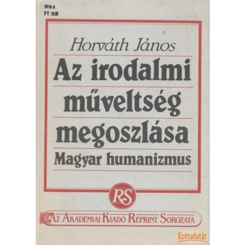 Horváth János Magyar humanizmus Az 1935-ben kiadott könyv reprintje. Könyvtári példány volt.