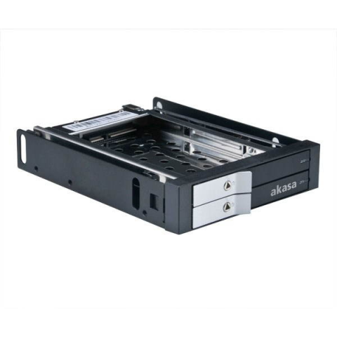 Merevlemez keret - használható akár 2 2,5" merevlemezhez, PC-hez, SATA csatlakoztatás, SATA csatlakoztatás PC-hez Az Akasa Mobil Rack segítségével biztonságosan lehet tárolni a 2,5"-os Serial ATA merevlemezt 3,5"-os öbölben. A kialakítás lehetővé teszi a gyors és egyszerű merevlemezcserét, akár műk