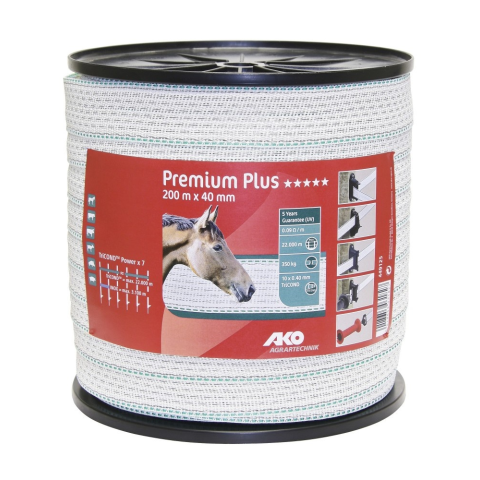 1 kép AKO Premium Plus villanypásztorszalag 200m x 40 mm fehér/zöld
