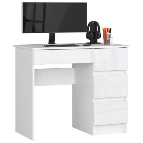 A-7 Íróasztal: 90 cm-es, fehér számítógépes íróasztal 4 fiókkal Ez a modern, fehér számítógépes íróasztal tökéletes választás otthoni irodába, gyerekszobába vagy ifjúsági szobába. Tértakarékos kialakítása és négy tágas fiókja elegendő helyet biztosít...
