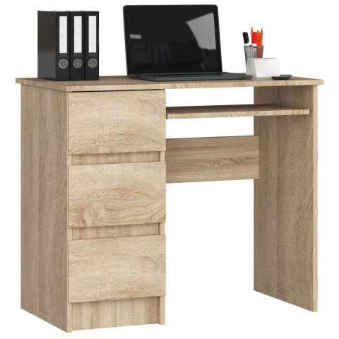 1 kép Akord Balkezes számítógépasztal, 3 fiókkal P77_90 - sonoma