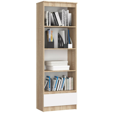 Akord CLP Sonoma Tölgy Könyvespolc Fehér Fiókkal bútor termékleírás