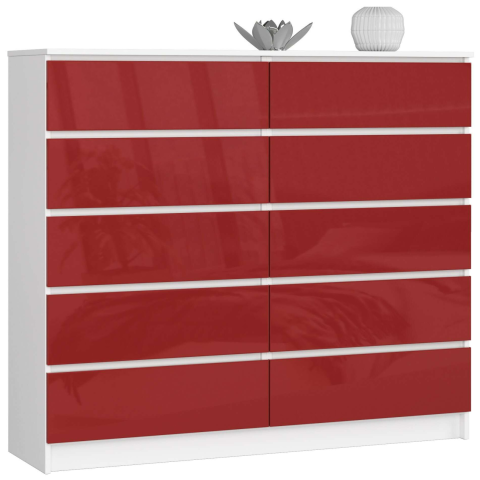 1 kép AKORD Furniture Factory 10 fiókos komód P121_138 - fehér/fényes piros