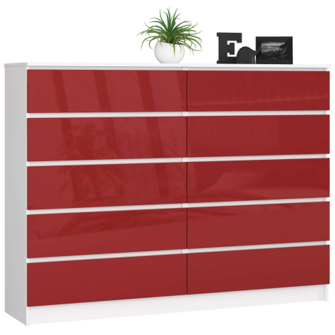 1 kép AKORD Furniture Factory 10 fiókos komód P121_160 - fehér/fényes piros
