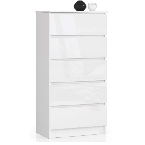 Teljes AKORD Furniture Factory 5 fiókos komód P121_60 - fehér/fehér fényes termékleírás